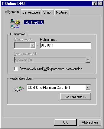 8. In der sich dann öffnenden Maske "T-Online-DFÜ": |