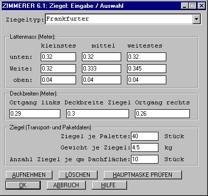Ein Ziegeltyp (Frankfurter) ist bereits vorgegeben, muß aber ggf. passend geändert werden, denn